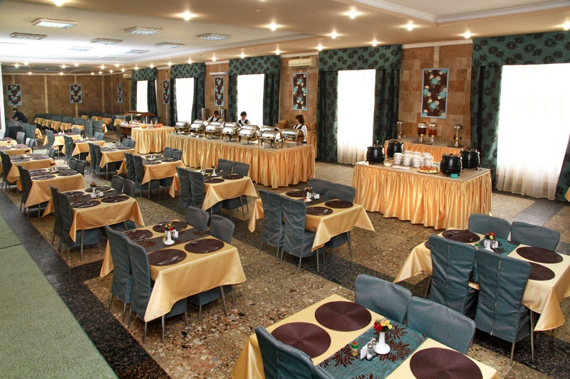 Харчування організовується в двох залах місткістю 400 чоловік. Для гостей з номера апартаменти діє система індивідуальних замовлень.